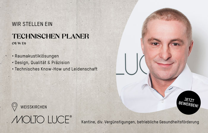 Als innovatives Unternehmen im Bereich Licht- und Akustiklösungen steht Molto Luce für Design, Qualität und technische Präzision. Zur Verstärkung unseres Teams im Bereich Akustik suchen wir einen engagierten Technischen Planer (m/w/d), der mit technischem Know-how und Leidenschaft an der Umsetzung anspruchsvoller Raumakustikprojekte mitwirkt.